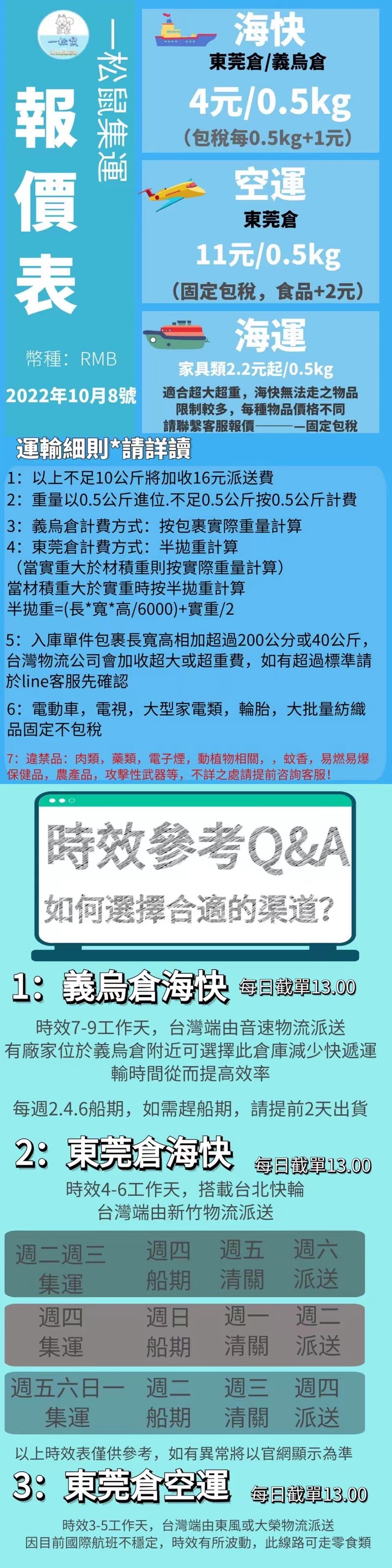 3:東莞海快,因之前小三通船期及其台灣派送較不穩定,現東莞海快改由台北快輪運輸,後端改由新竹派送